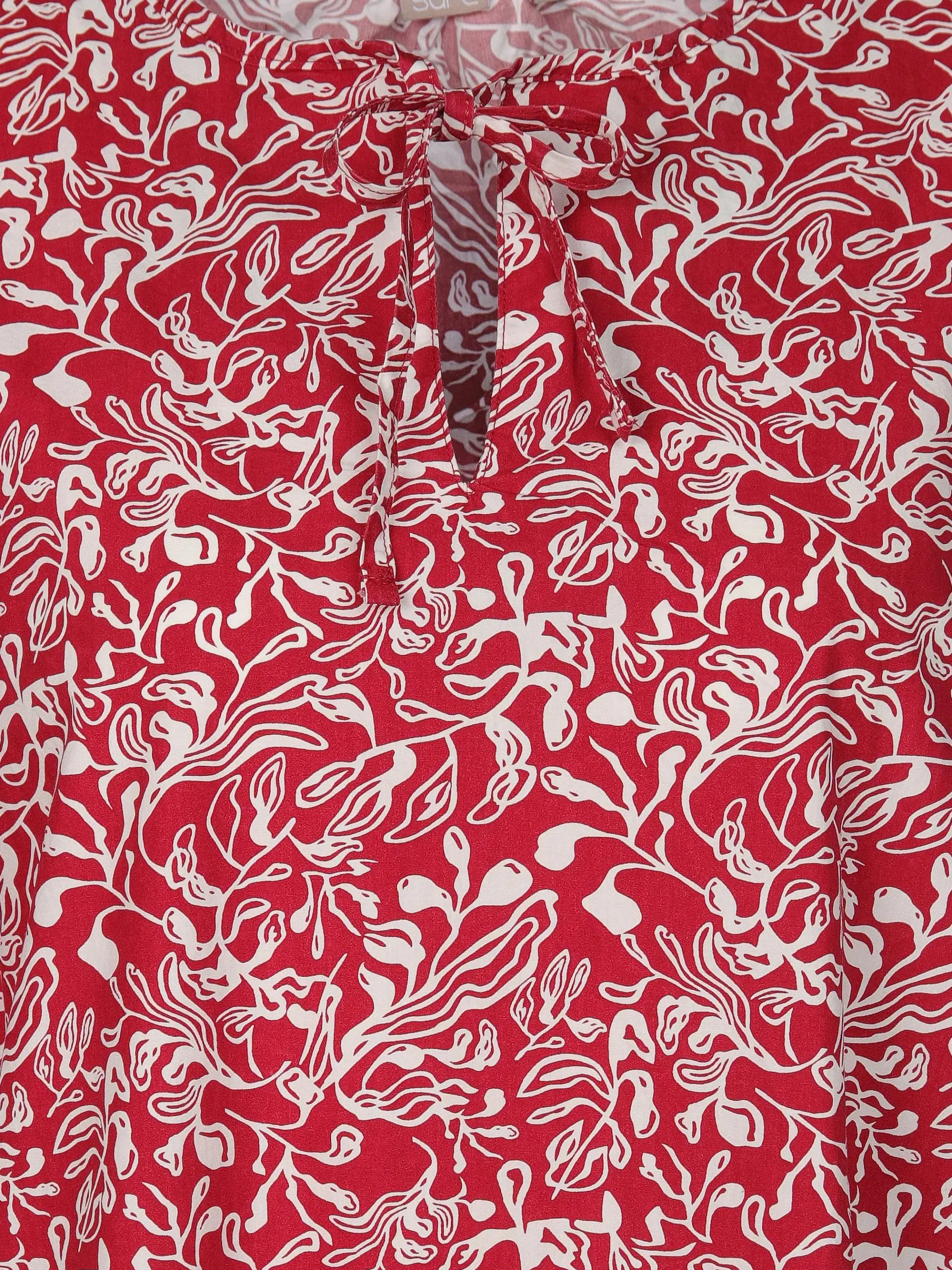 - Rundhals-Aussschnitt mit tiefem Schlitz und Bindeband