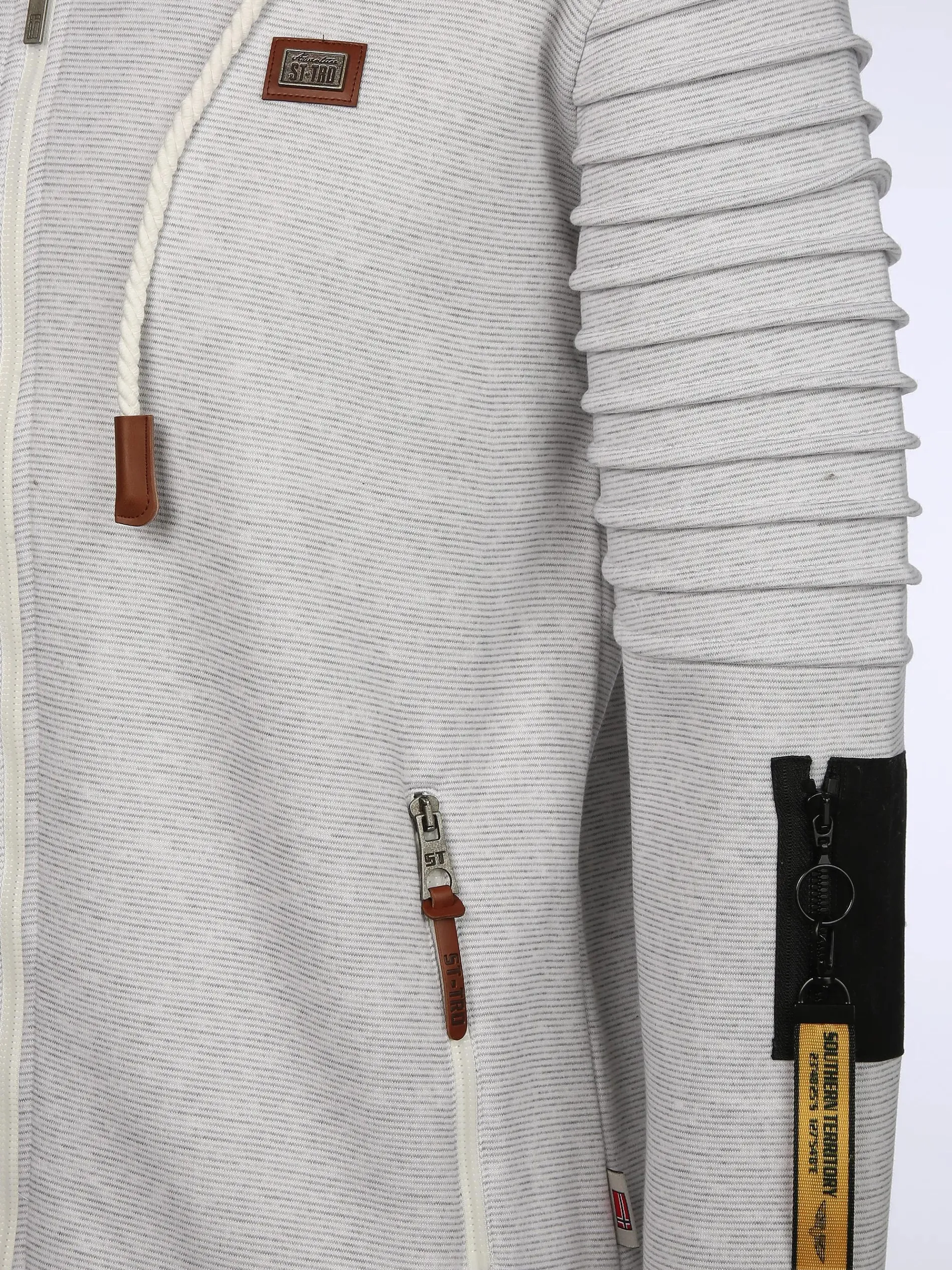 - Tasche am linken Oberarm und langem Zipper