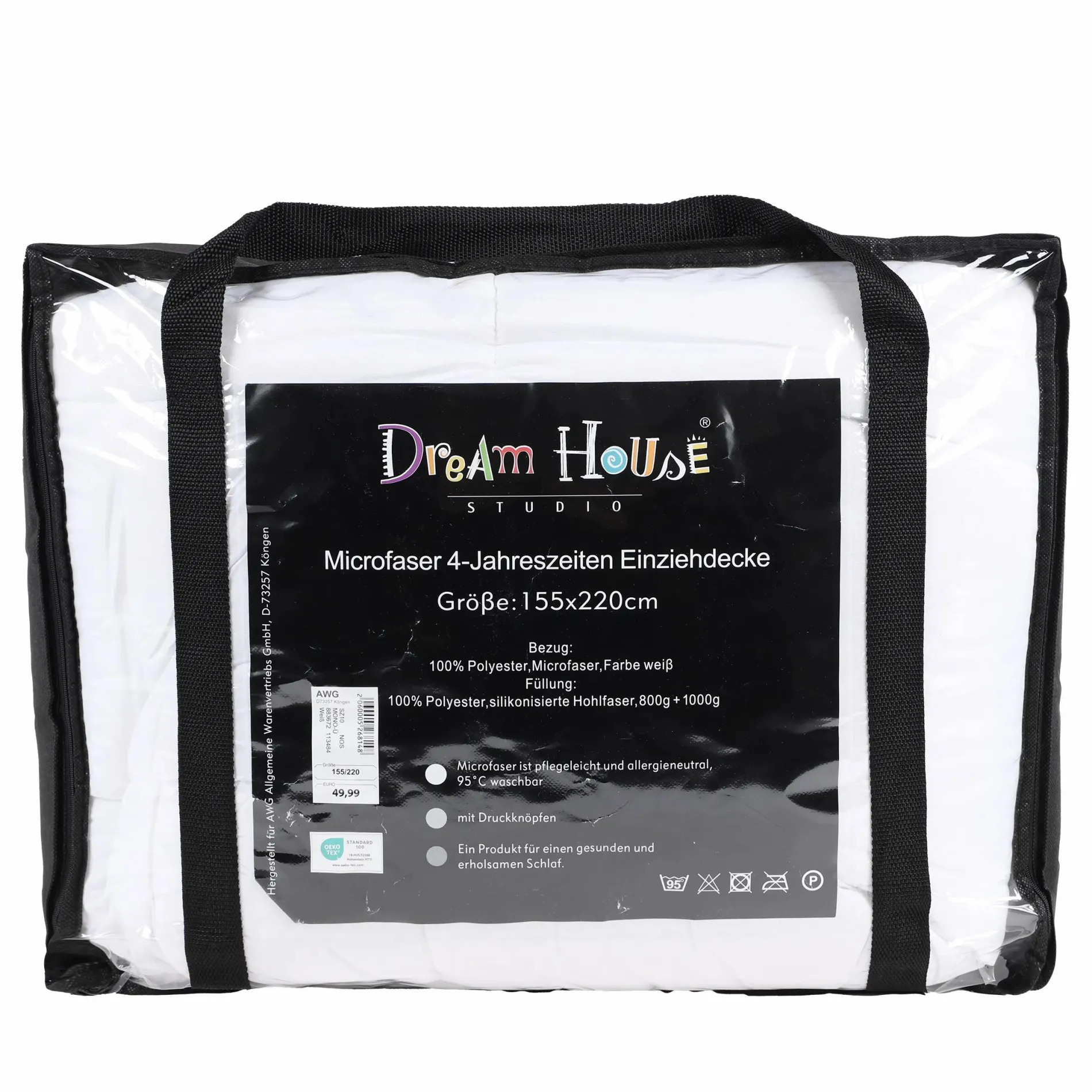 - Bezug: 100% Polyester, Frabe weiss
