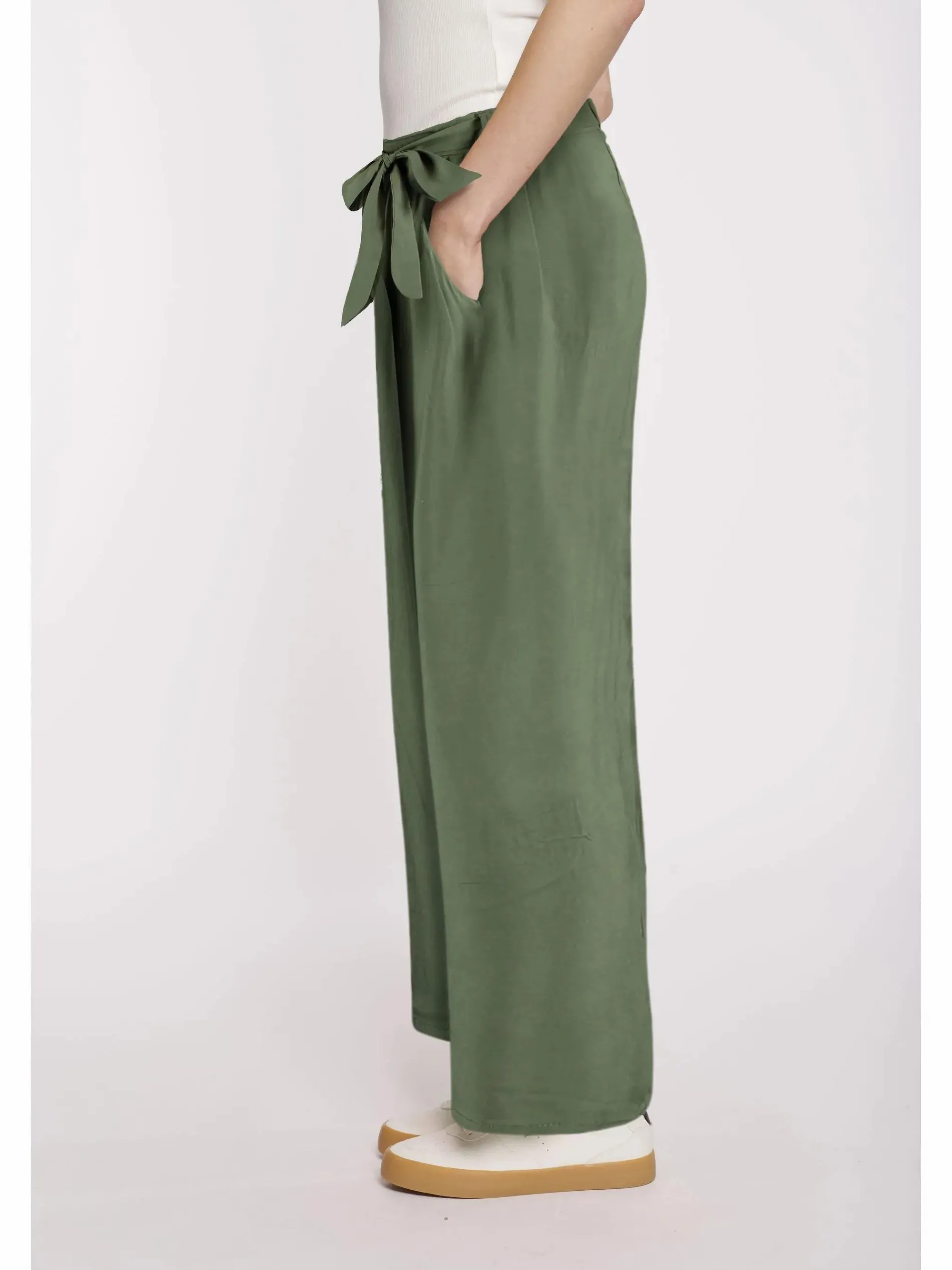 - Design: Breites Bein mit Bindegürtel auf Taillenhöhe – betont die Figur und sorgt für einen femininen Look