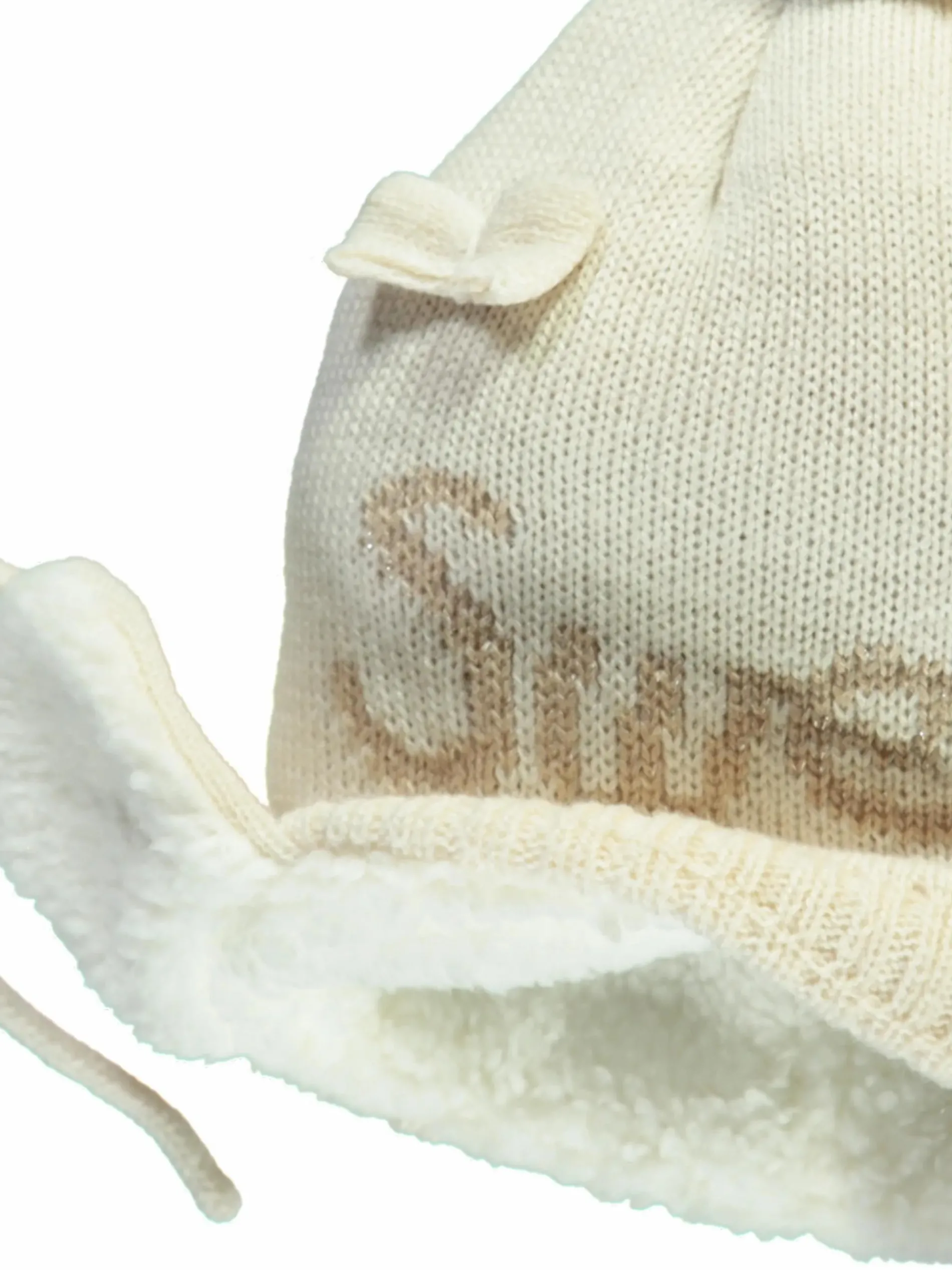 - kurze Kordelbänder zum Schließen an den Ohren