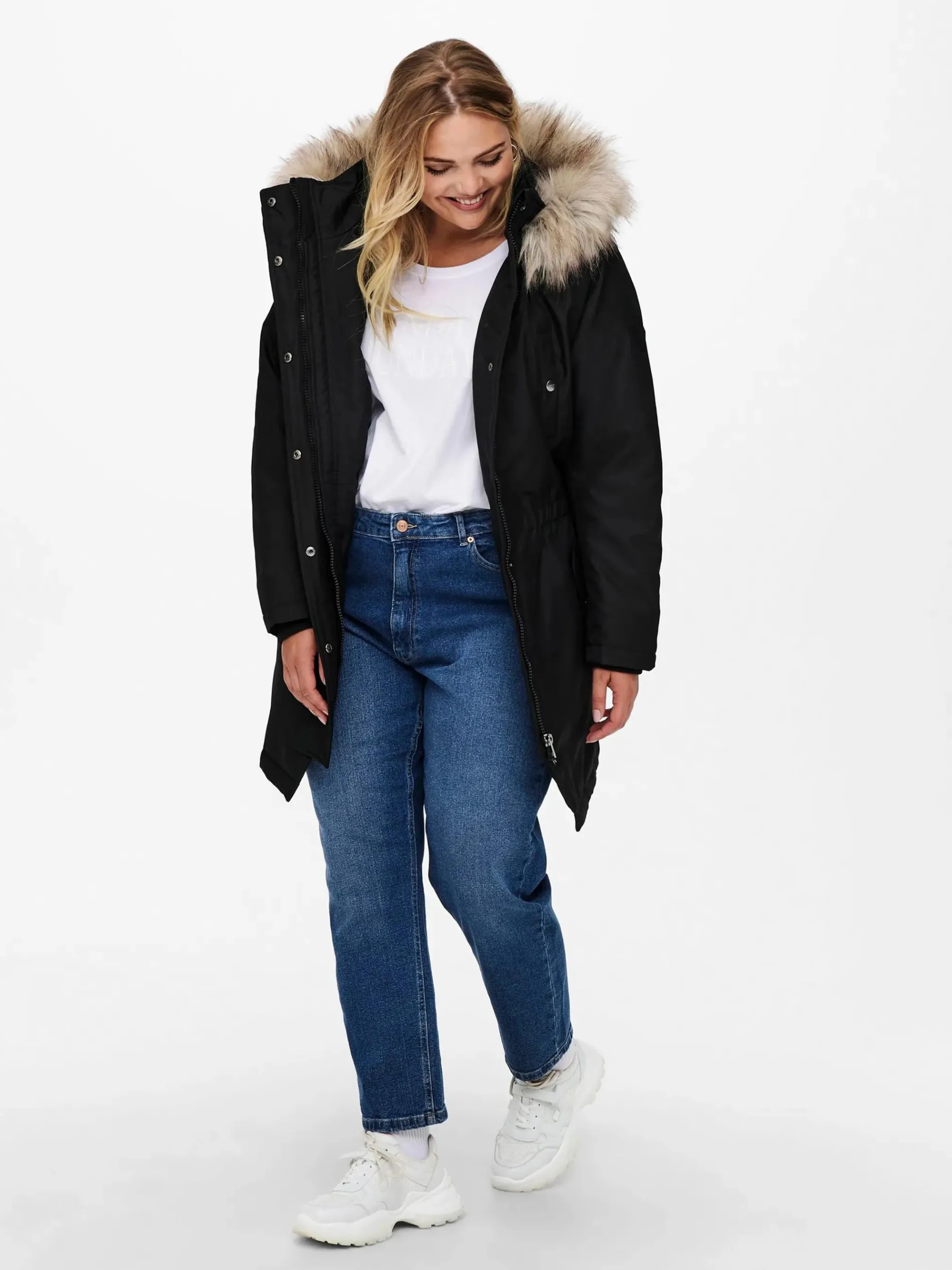 - feste Kapuze mit abknöpfbarer Fellumrandung